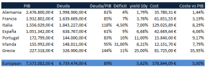 Si los mercados de deuda pública se calman y el coste de financiación de las economías de la eurozona se reduce, entonces el esfuerzo sobre el PIB se relajaría a niveles coherentes y los países deberían entonces, empezar a buscar el crecimiento económico con reformas estructurales, que atacaran al sistema productivo.